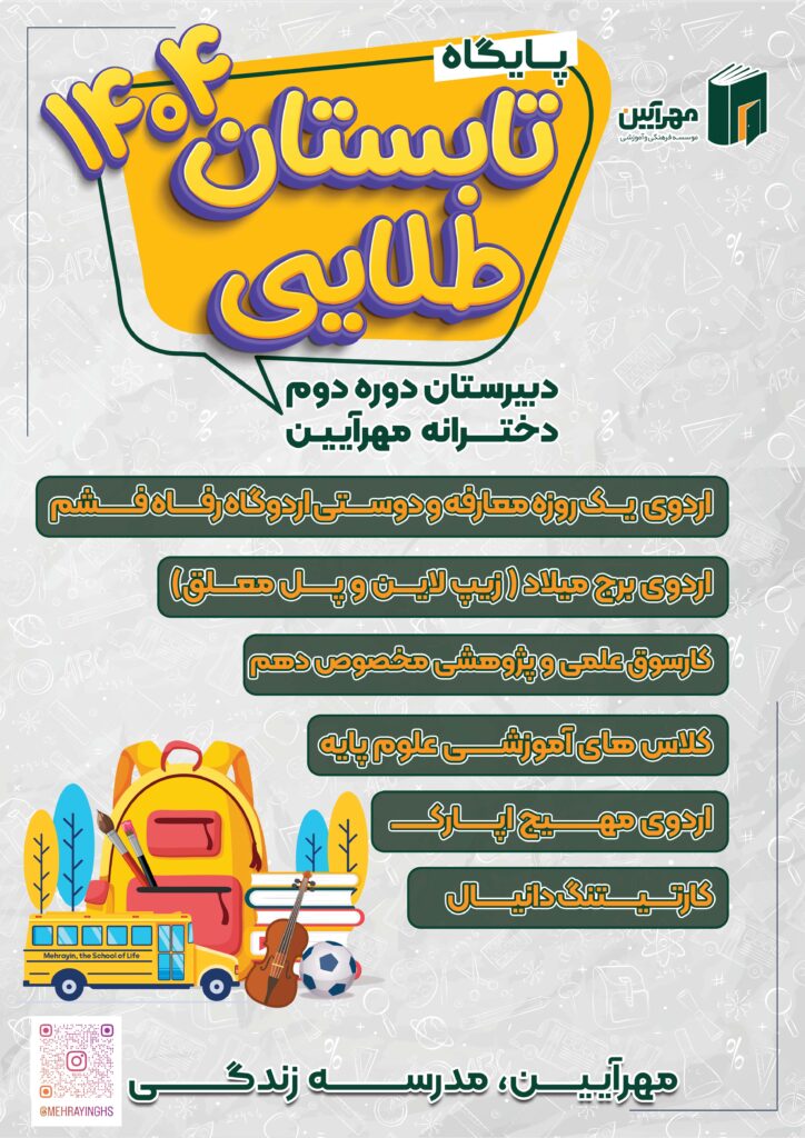 08 مرداد سایر شروع کلاس های تابستانی از ۱۲ مرداد ماه ارسال توسط مهرآیین ۱۴۰۴-۰۵-۰۸ 🎓 آغاز کلاسهای تابستانی دبیرستان دخترانه مهرآیین از ۱۲ مردادماه 🌞دبیرستان دوره اول و دوم دخترانه مه... ادامه مطلب